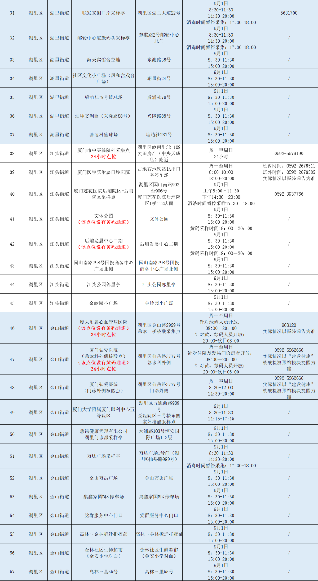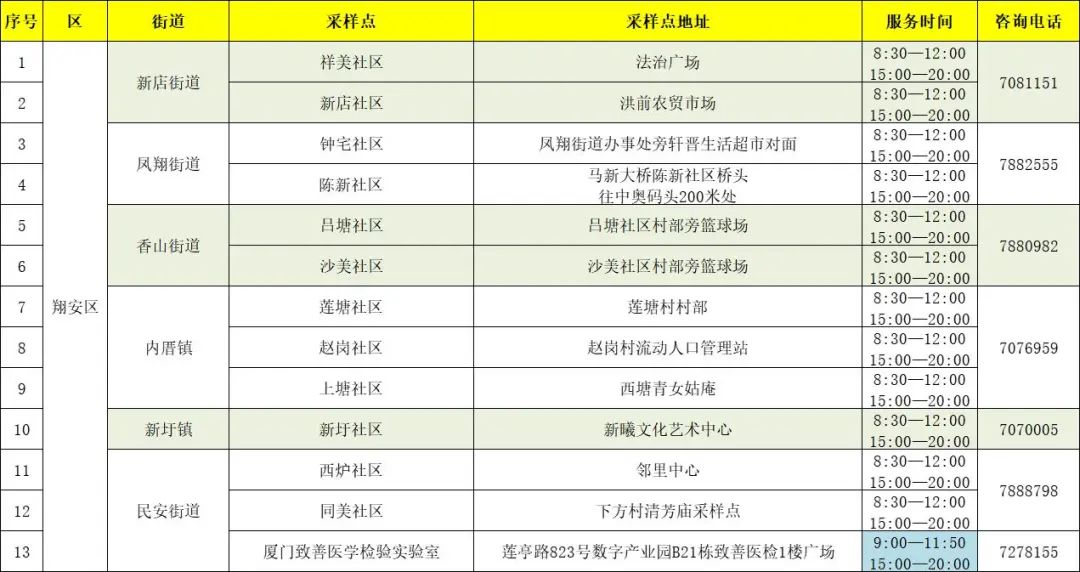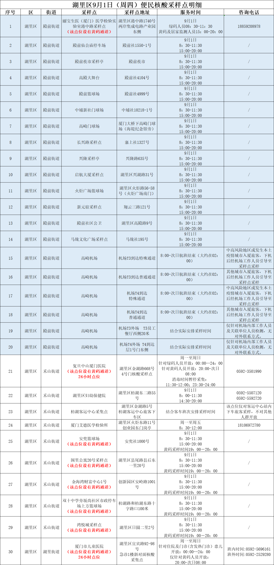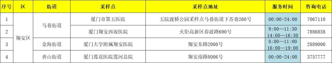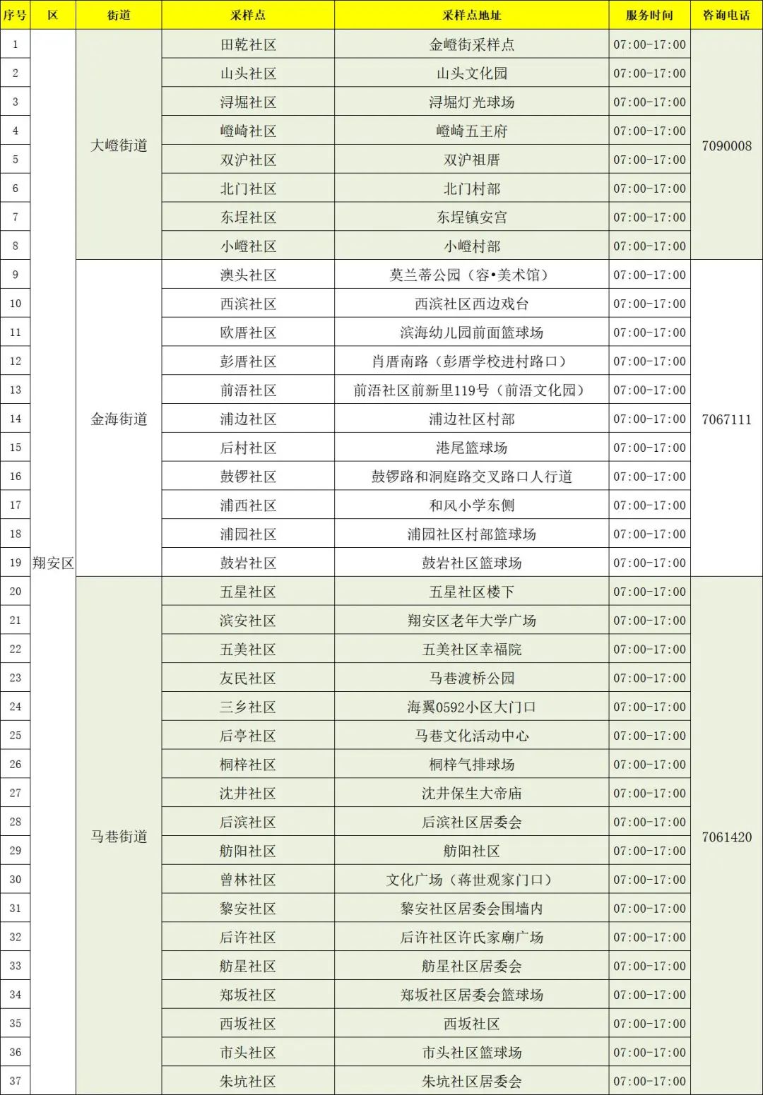 9月1日,翔安区于大嶝街道、金海街道、马巷街道集中开展核酸检测,以上镇街居民,可前往社区核酸采样点进行检测。