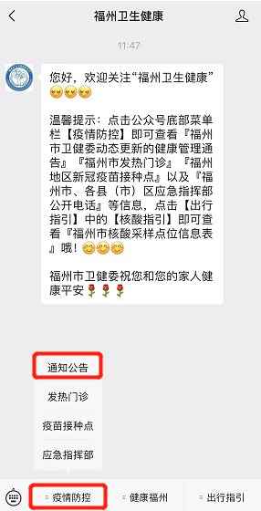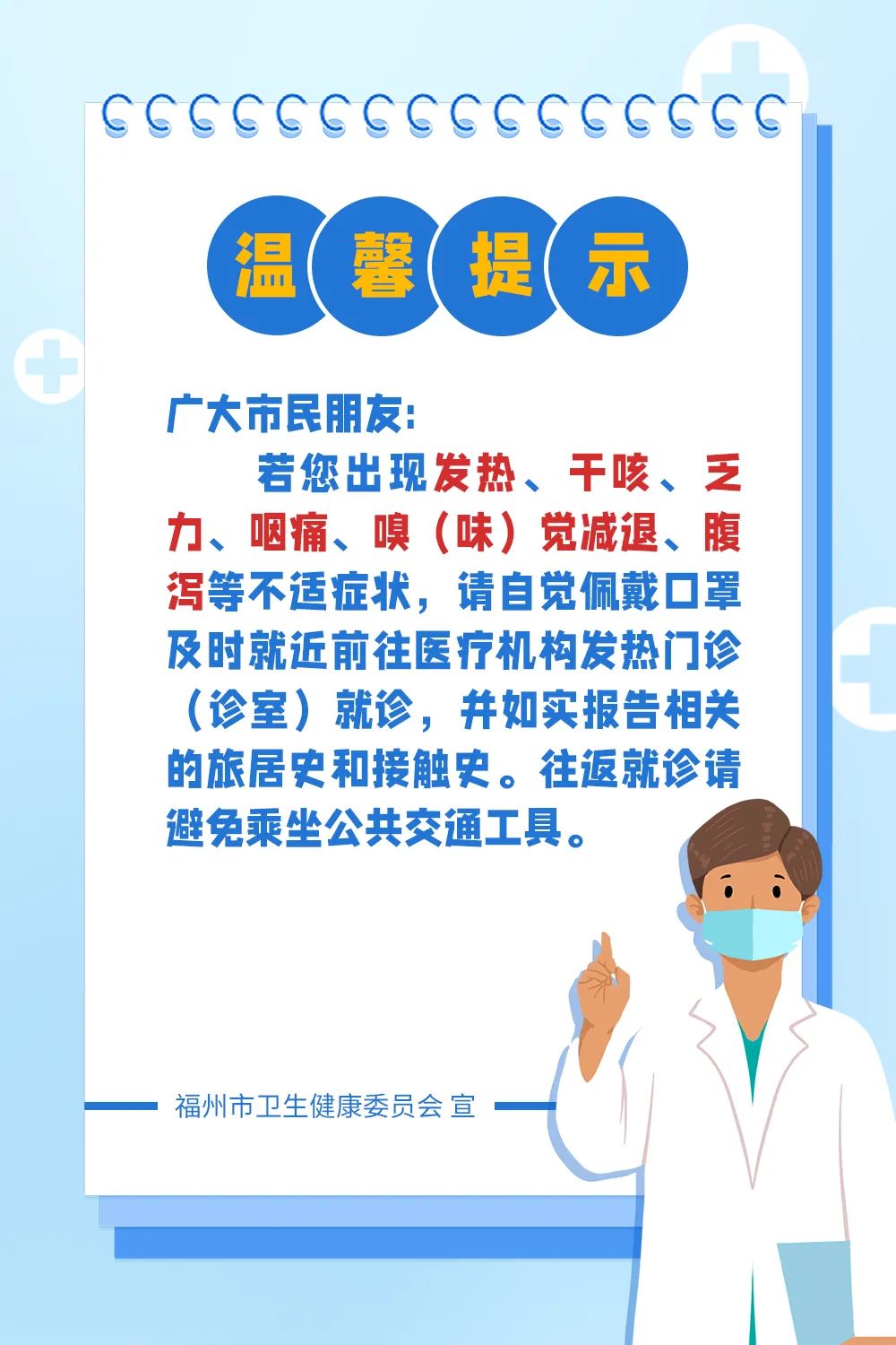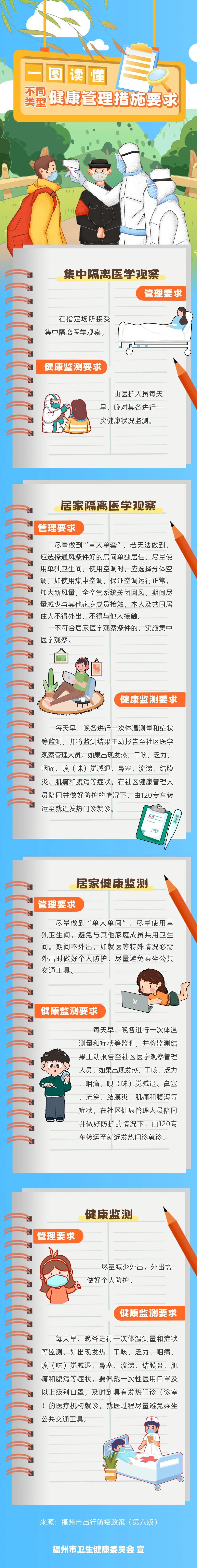 注:【福州市卫健委将在“福州卫生健康”网站动态更新高、中风险地区入(返)榕健康管理措施,广大市民朋友可在微信公众号『福州卫生健康』的微信菜单栏点击『疫情防控』-『通知公告』进行查看】