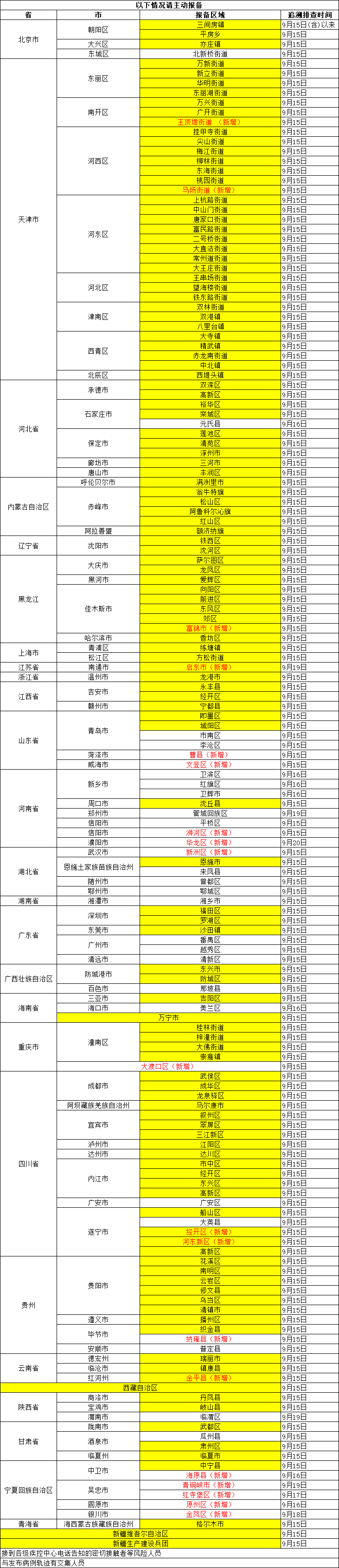 黄底为有中高风险区的城市(更新时间截至当日15时),中高风险区以国务院客户端实时更新为准。