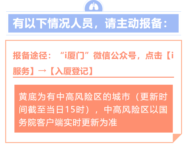 近7天内有涉疫地区(见下表)旅居史的,抵厦后须第一时间向所在社区、工作单位或所住酒店报告,根据出发地和途经地疫情风险等级实施分类管理: