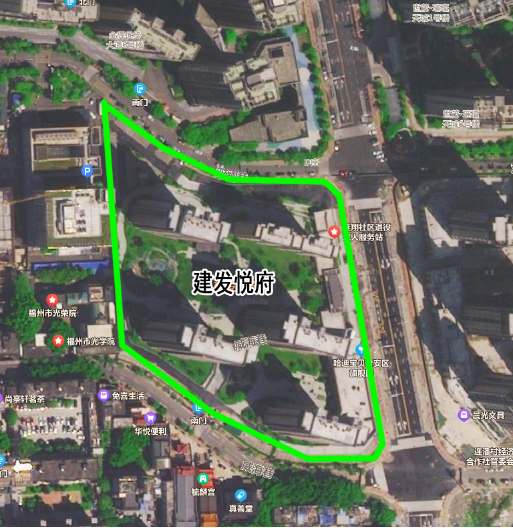 东至秀坂路,西至福州市光荣院,南至威海巷,北至双翔巷的合围区域(建发悦府小区)。