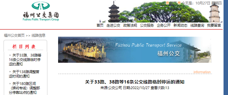 注意!刚刚,福州公交集团通知16条公交线路停运!