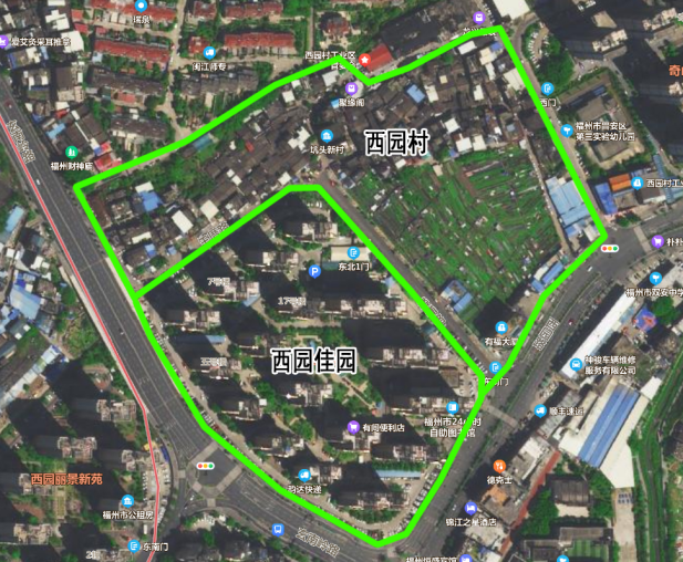 2.东至楼铺路,西至玄南岭路,南至西园路,北至王厝路的合围区域(西园佳园小区)。