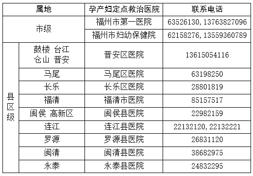 如有医疗机构涉疫临时关闭前已建档的普通孕产妇,可转移至应急助产机构接受产检和住院分娩。目前福州市已确定了福州市第一医院、福州市第一医院东院、福州市妇幼保健院、福州市第二医院、福州福兴妇产医院、长乐区妇幼保健院、福清市医院、闽侯县人民医院、连江县中医院、罗源县松山卫生院、闽清县六都医院、永泰县中医院12家市、县两级应急助产机构,用于应急承接普通孕产妇产检和住院分娩。