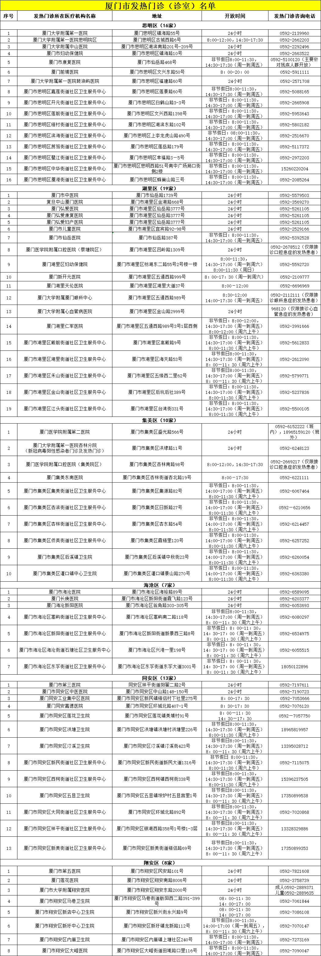 全市发热门诊(诊室)名单如下: