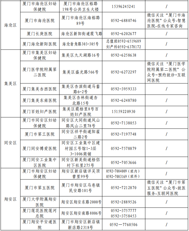 孕产妇需要就医及咨询怎么办?收好下方这份厦门市助产机构及妇幼保健院咨询电话一览表。