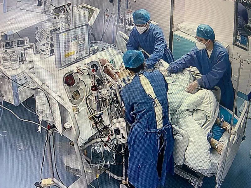 以1月3日开展的清醒状态下无创通气ECMO上机为例,患者因做过肾移植手术且长期服用抗排斥药,免疫力较低,感染新冠病毒后危险加倍。为顺利给患者完成插管,降低患者在插管过程中因为缺氧导致心脏骤停的风险,卓惠长带领医护团队在患者保持清醒的状态下,进行了无创通气ECMO上机的操作。从准备到完成操作、安全转运,整个过程持续了近5个小时。共同参与操作的郭清清医生早上上班前还发热,简单退热后立马返回工作岗位。滨海院区的医生也专门赶回来支援,多个病区的护理团队通力合作,管路预充、上机维护、抽血、观察患者……全力配合医生顺利完成了此次操作。尽管加班到了深夜,但看到患者平安,大家都感到十分欣慰。