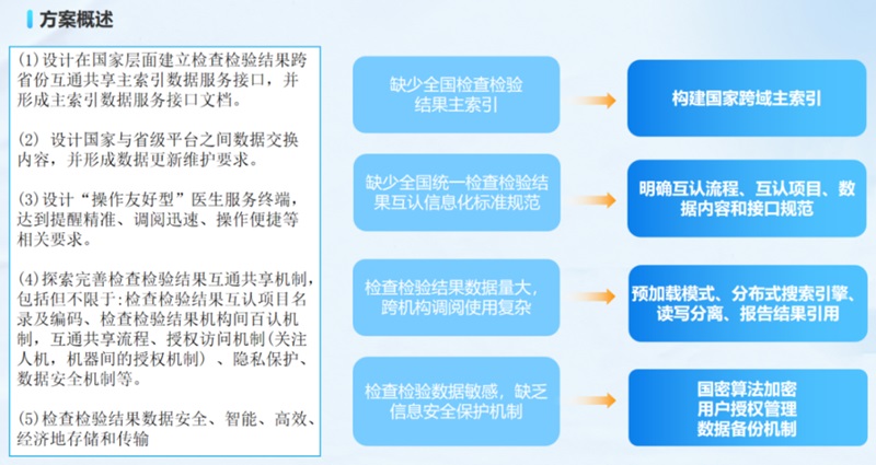 本次福建方案提出通过统一医学检查检验互认项目、互认范围、互认方式、信息系统改造接口路径等,建立跨省市医学检查检验结果汇聚平台和大数据库,既实现检查检验结果医疗机构间的线上共享调阅,又可以实现医学信息的结构化存储,为后续的医学信息统计分析、大数据应用等提供基础保障,实现了试点应用,具有较强可行性,得到国家卫健委充分肯定,试点经验多次在全国会议上交流推广。