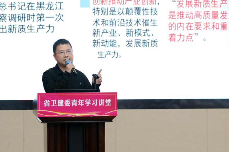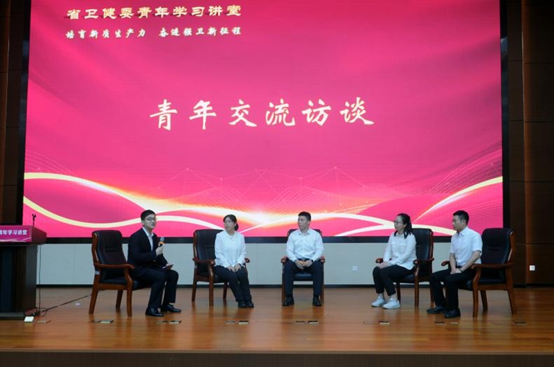 来自省卫健委机关和省疾控中心的10位青年代表,以“培育新质生产力,奋进强卫新征程”为主题,结合个人岗位工作实际和学习经历,以主题发言和互动交流的形式分别做了学习心得分享。