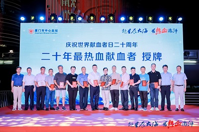 当晚,厦门演武大桥上的星光大道为献血者开启,悦海湾酒店为献血者亮灯,厦门以星辰大海、璀璨灯光、浪漫音乐,共同致敬无偿献血者。献血20年的最热血献血者、最热血家庭以及厦门市献血品牌、热血超人战队、公益共创单位代表等近百人走上星光红毯,在习习海风中共度这属于献血者的节日。