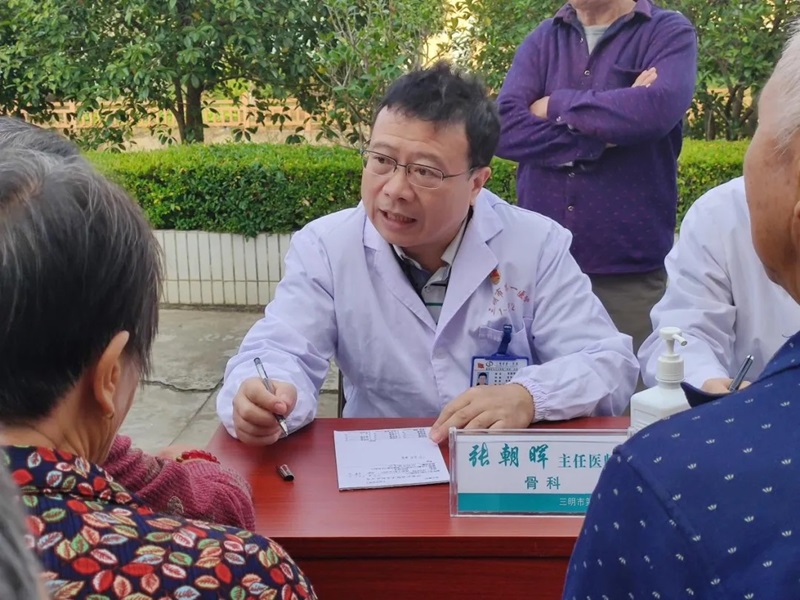 “中国好医生、中国好护士”2024年8月月度人物、三明市第一医院骨外科党支部书记、科副主任、主任医师张朝晖认真地为76岁的朱奶奶检查手腕。“我手腕这块经常疼得厉害。”张朝晖一搭手便判断朱奶奶可能患有腕管综合征。“我原来也去找中医做过针灸,一直没确定是什么毛病,这位医生讲解得很清楚,我决定听他的话去医院做彩超看一看。”朱奶奶说。