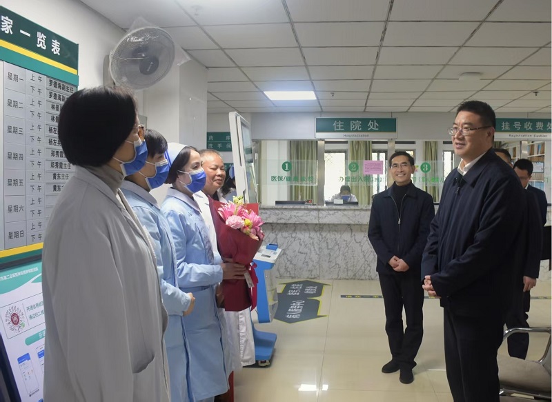 马年新春佳节即将来临。2月12日,省卫健委党组书记、主任,省中医药管理局局长杨闽红深入省、市医疗机构、村卫生室调研,走访慰问一线医务人员,送去节日问候和新春祝福,代表省卫健委向春节期间坚守工作岗位的广大医务人员及家属致以衷心感谢和崇高敬意。