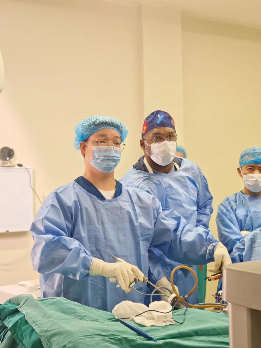 弗朗西斯敦分队长、泌尿外科主治医生胡敏雄克服缺乏激光碎石设备短缺等困难,因地制宜设计手术方案,在仰加圭转诊医院成功开展博茨瓦纳首例腹腔镜下肾盂切开取石术。该手术可在不切开患者身体的情况下移除肾结石,具有疼痛更轻、创伤更小、安全性更高等优势,患者术后恢复良好,相关手术得到博茨瓦纳卫生部和受援医院的充分肯定。