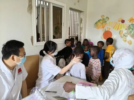 7月15日,医疗队皮肤科主治医师肖翠容等队员在迪亚姆尼亚久儿童医院皮肤科护士法玛·恩东戈的配合下,为孤儿逐一检查,发现许多头癣、湿疹、传染性软疣等皮肤问题,部分合并多种病症。肖翠容随即为患者进行现场诊疗、建立健康档案,并为保育员讲解护理要点。考虑到传染性软疣具有较强的传染性,7月22日,肖翠容和同事在儿童医院为2名软疣患儿免费做刮除术治疗。7月29日,医疗队回访孤儿院,发现大部分患儿症状改善,2名软疣患儿治愈。肖翠容还指导10多名严重头癣患儿调整用药,并与护理人员互留联系方式以便后续随访。