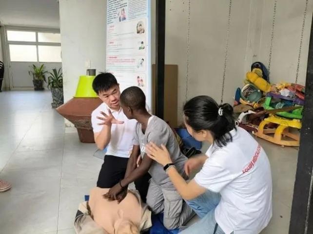 为提高孤儿院工作人员和儿童应对突发状况的能力,麻醉科副主任医师张文清在法语翻译刘雅妮的协助下,开展了心肺复苏(CPR)和海姆立克急救法培训。通过理论讲解、模拟演示和“手把手”指导,参训人员逐步掌握了急救操作要领。现场互动积极,每位参训人员都进行了实操演练,每个技能都获得规范指导,确保技术规范。